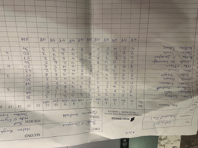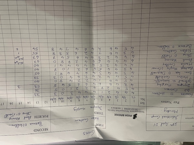 Congratulations to Ballinhassig Bridge Club members Bernie O'Halloran and Dermot Lucey who participated in the Cooper Cup with John Lyons and Noel Bradfield (both from Mandeville Bridge Club) who placed 4th out of 53 entries.