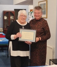 Joan has been awarded the annual masterpoint certificate for our club by the EBU as the member who has gained the most masterpoints in the year, a total of1350. Well done Joan