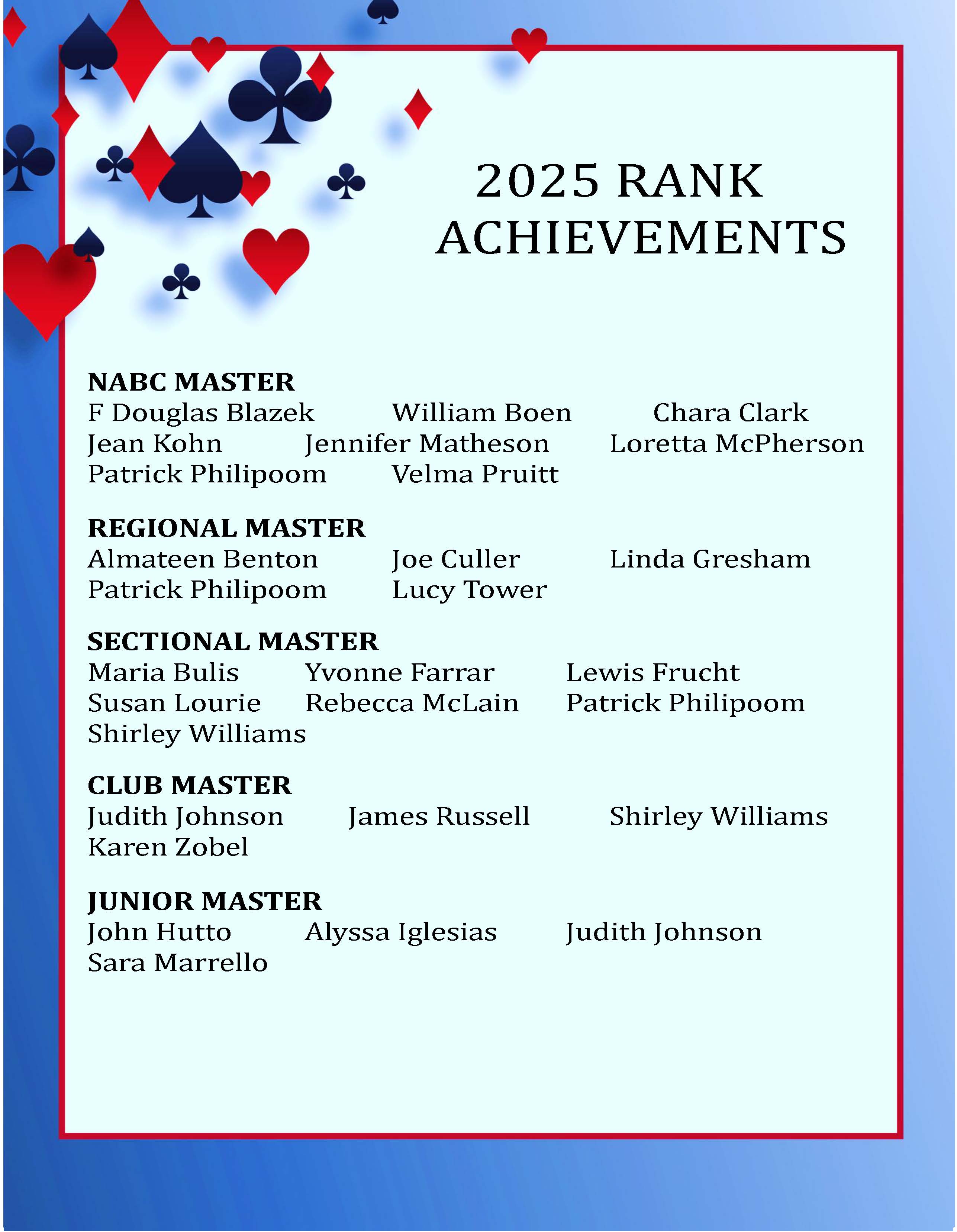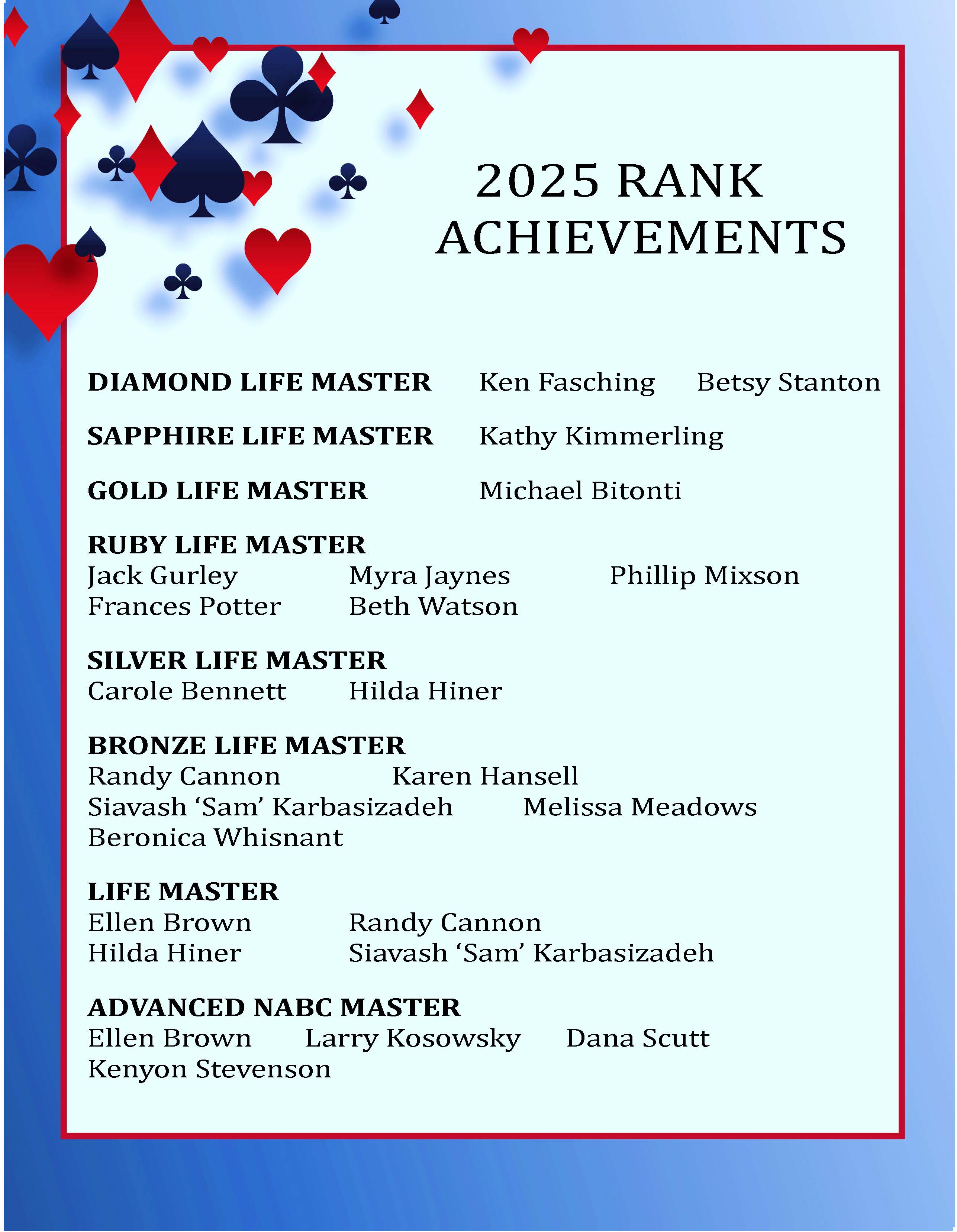 The directors ask that any additions or cancellations made after 10:00 AM the day of the game - be done by phone by calling the director directly, or the CBC club phone.