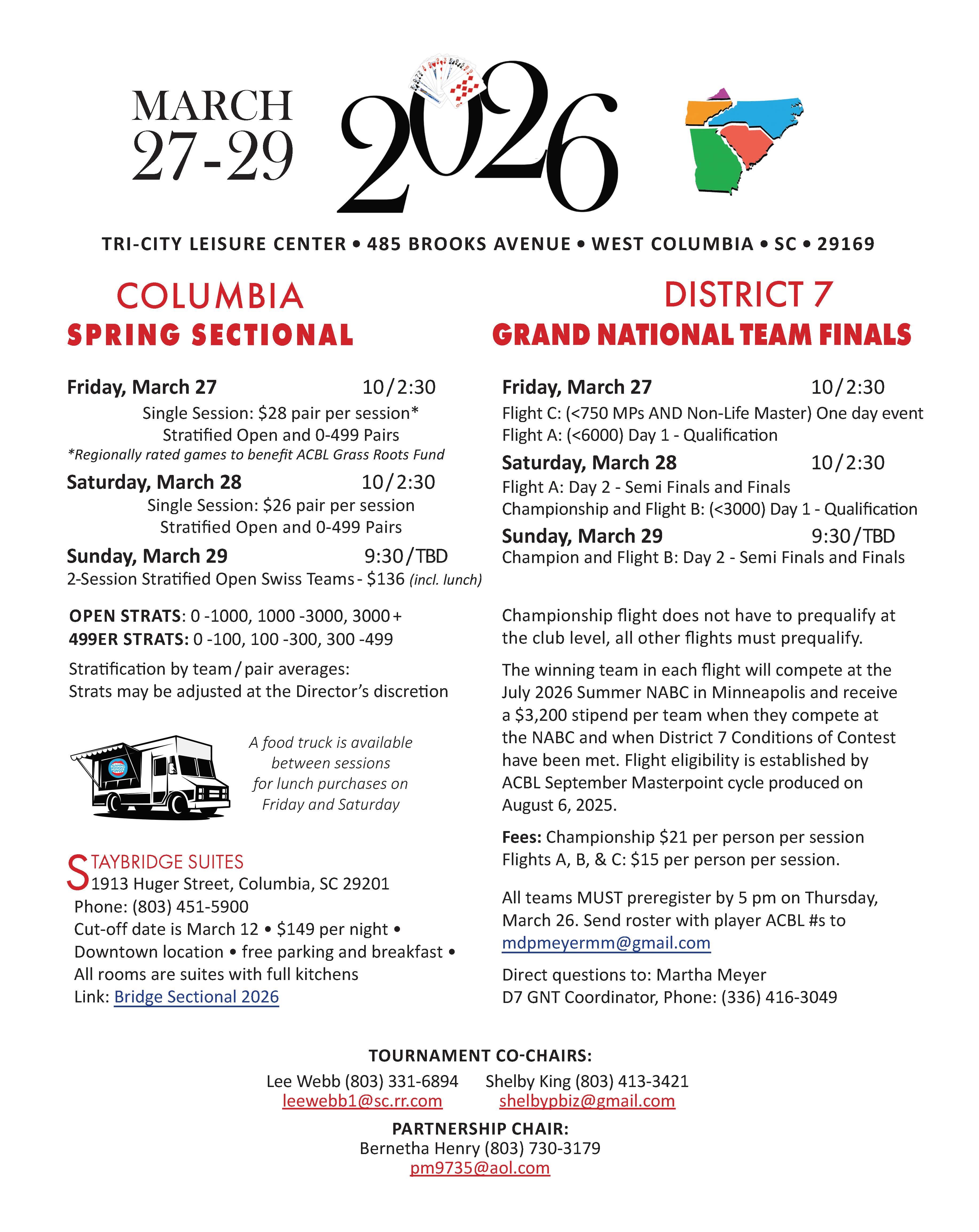 | WEST COLUMBIA SECTIONAL and GNT DISTRICT FINALS |