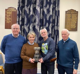 The 2025 final of the competition took place last night (Thursday 30 October) with qualifiers taken from the Bob Graham Ladder based on results on Monday evenings for the club year September 2024 to August 2025. The final is a tournament of 19 boards with each player playing 1 board partnering each other finalist. It was a complicated movement and a bit like musical chairs as well as a game of bridge. Congratulations to the winner, Mo Borley who has her name engraved on the cup, and to Jeff Angove who was runner up.