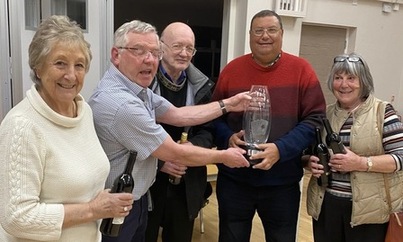 Congratulations to the winners Dave Strawbridge & Mike Walsh with Betty Golding & Margaret Mardlin (pictured), the runners up Richard Lingham & Viv Mabley with Graham Hoare & Ann Slee and to the winners of the risers prize Peter Taylor & Caroline Palmer with Serena Kirkman and Lela Daniel.