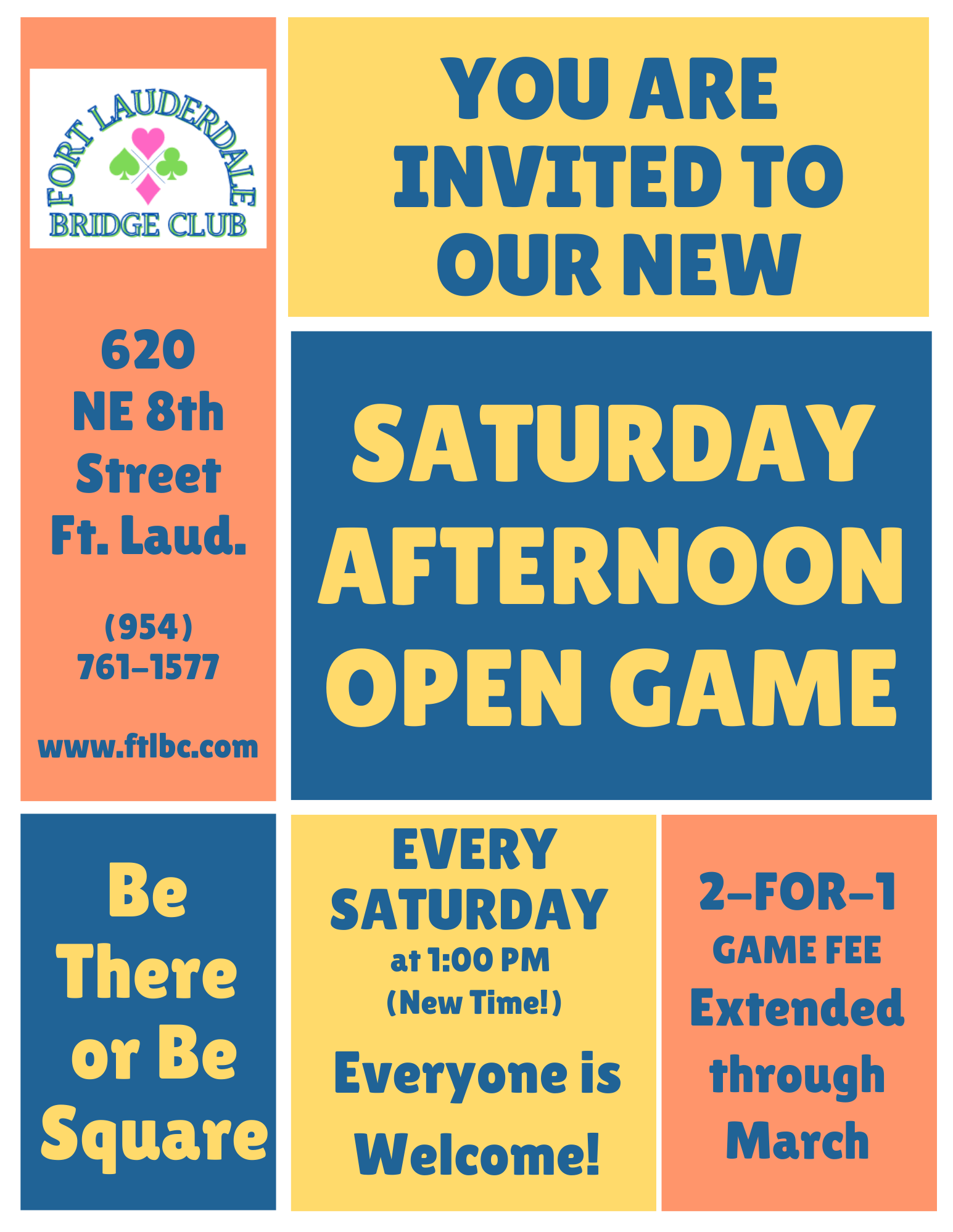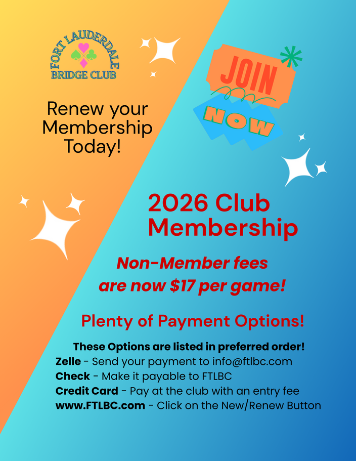 Open Pairs12:30pm Monday - Friday1:00pm Saturday1:00pm Sunday