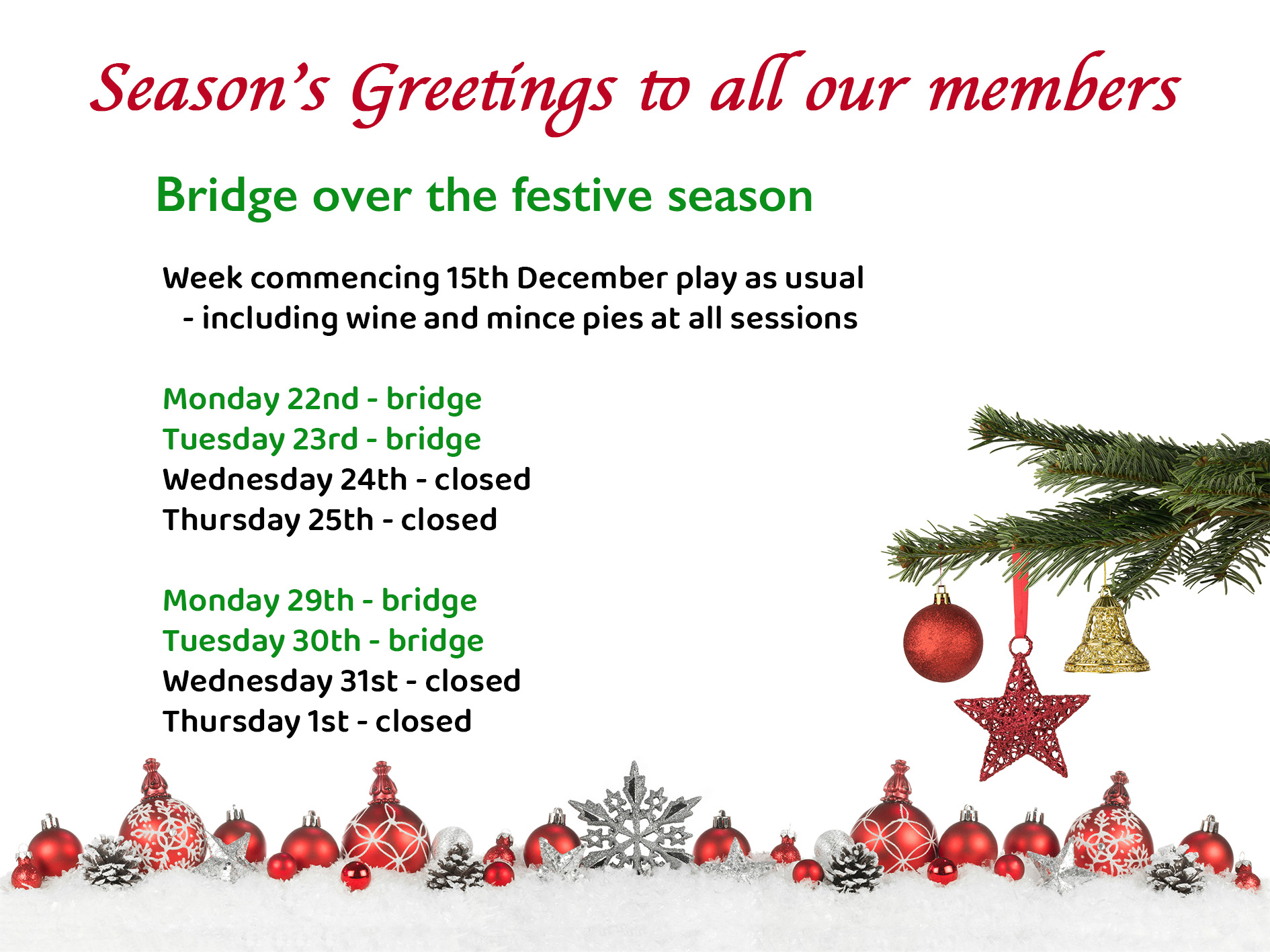 Our next Swiss Pairs event will be on Friday 16th January please be seated for 1pm.