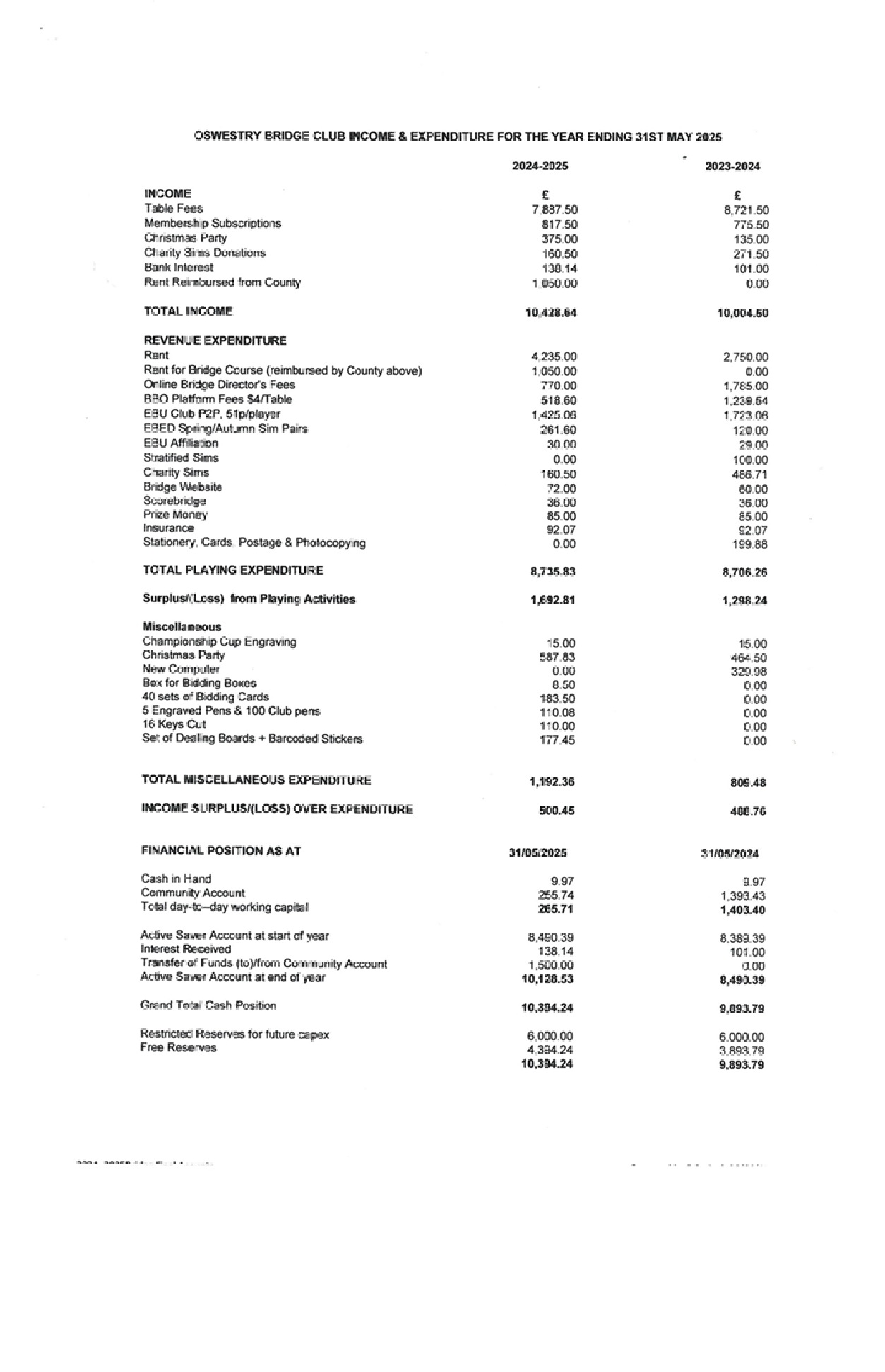 ln summary this year we made a surplus of £500.45, better than last year's surplus of