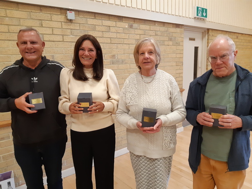 Winners were Alaric, Roger & Jill, seen here with their team-mate John Sutcliffe, and in a very close second place were Martin, Debbie, Marlene & Bob.