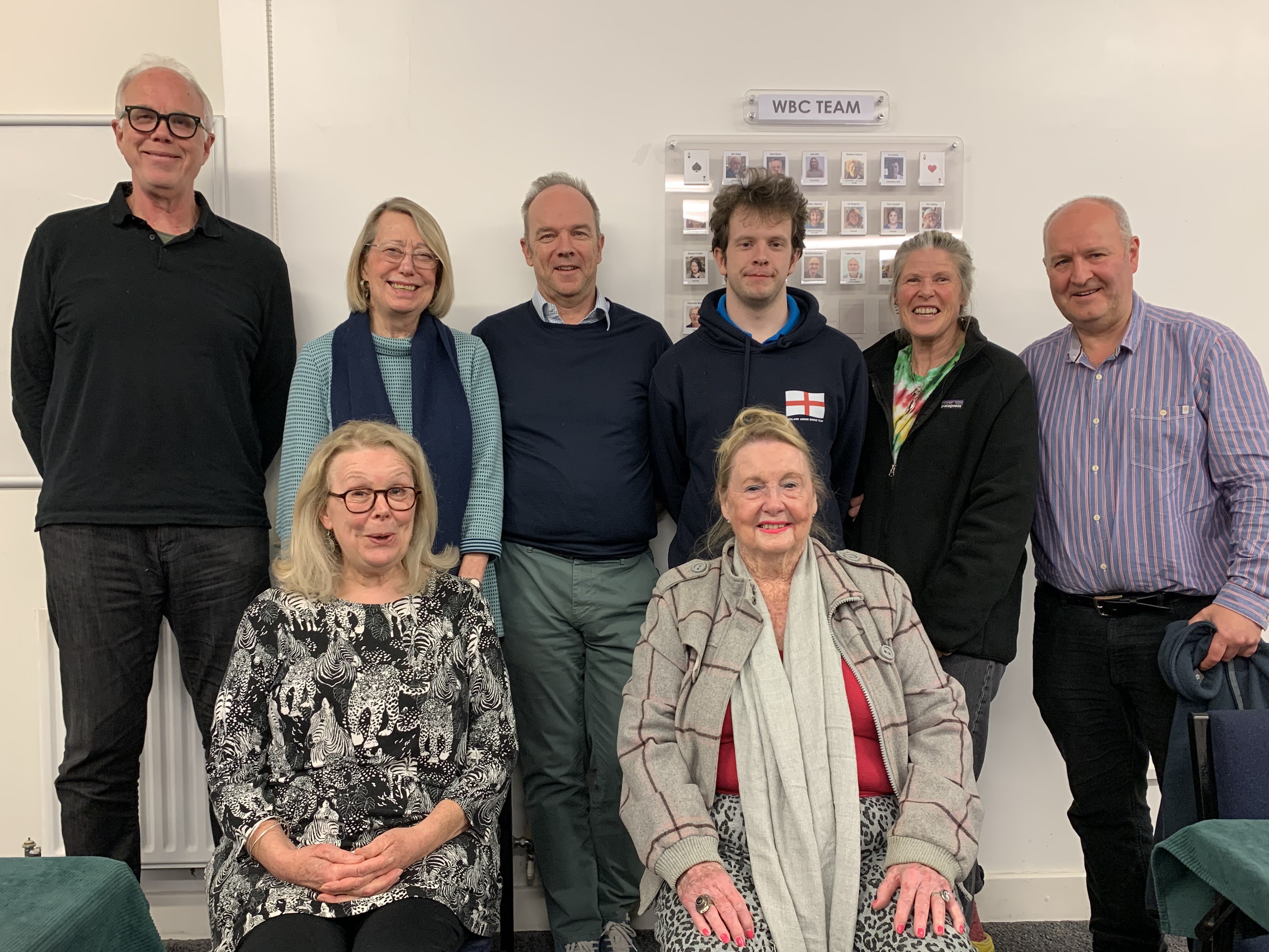 Congratulations to the winners of the latest Blue Pointed Swiss Pairs, held on Sunday, 30 pairs competed for the top prize of £200, which was won by member Simon Edelsten, playing with Stephen Kennedy, second place went to members Denise Grimston and Ann Ingel and third to visitors Andrew Briggs and Milli Fawssett; the highest placed "non experts" (NGS <10) were members Linda Wilson and Stephen Horn (playing for the first time together) and visitors John Veal and David Birch (not in picture), who shared joint 11th place (very creditable out of a field of 30) The next Blue Pointed event is on 15th February 2026.