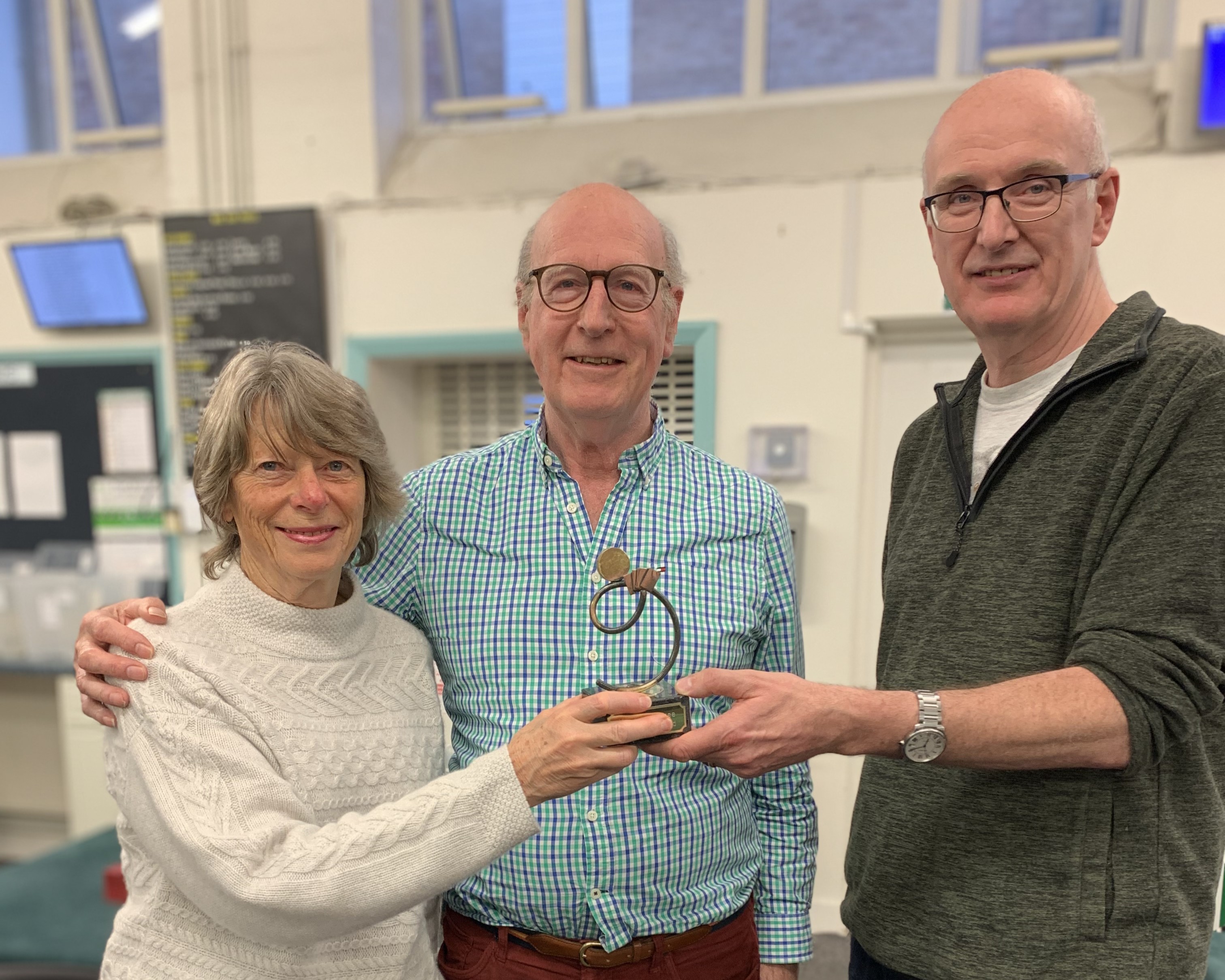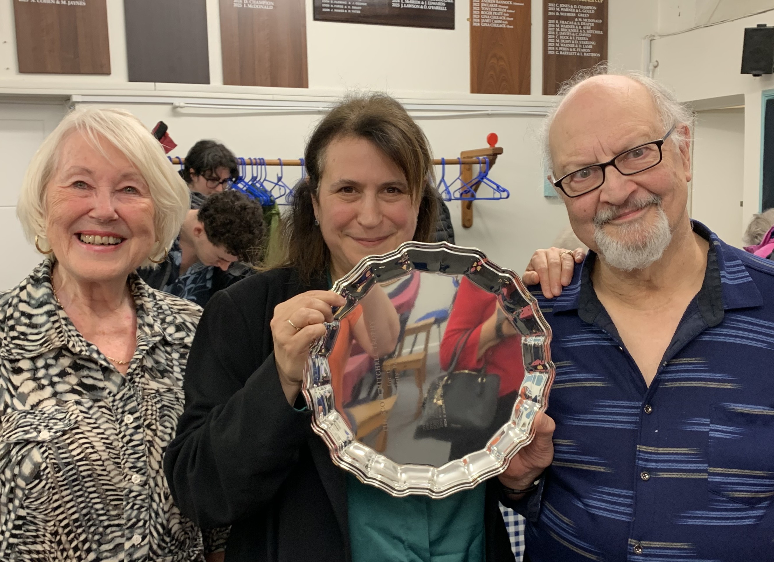 A massive thank you to everyone who supported the charity fundraising in aid of St Raphael’s Hospice - WBC members raised £6,688 in donations, raffle ticket sales and silent auction bids - The Charity Pairs on Sunday was the best attended since pre-covid, with 22 tables - Winners of the Scott Mitchell Salver were Tim Pelling and Naomi Cohen, making it the second time they have won the event - here they are being presented with the trophy by Billie Stephens, long time friend and bridge partner of Scott's